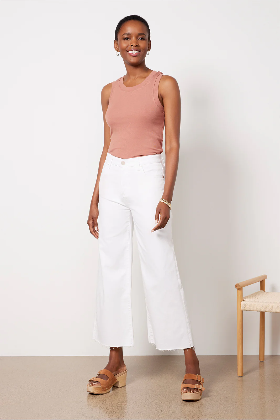 A versatile wardrobe staple, this LNA tank features a fitted crewneck silhouette in double-layered, soft rib knit fabric. Wear it alone or under a button-down, cardigan, or denim jacket.Â