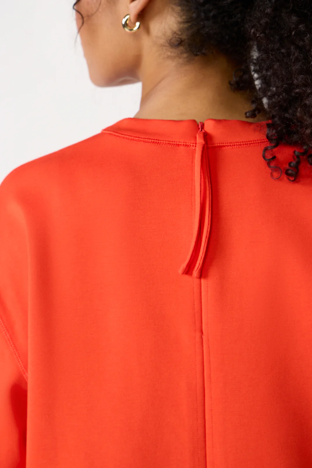 Crafted from a soft, comfortable ponte fabric, this easy pullover from Spanx features a crew neckline, zipper back closure, relaxed drop-shoulder sleeves, and a hip-skimming length.Â